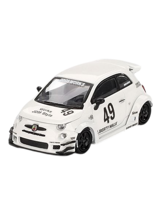 Mini GT LB-Works x Abas Works Abarth 595 Gara White 1:64 Scale