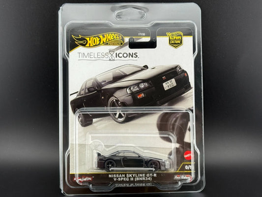 HotWheels Premium(CHASE PIECE)Nissan Skyline GT-R V-Spec II BNR34 Timeless Icons 1:64 Scale FPY86 (with protector) rlc